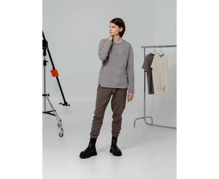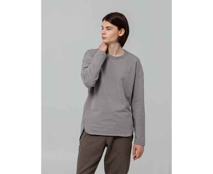 Футболка унисекс с длинным рукавом свободного кроя со спущенным плечом и смещенными плечевыми и боковыми швами.