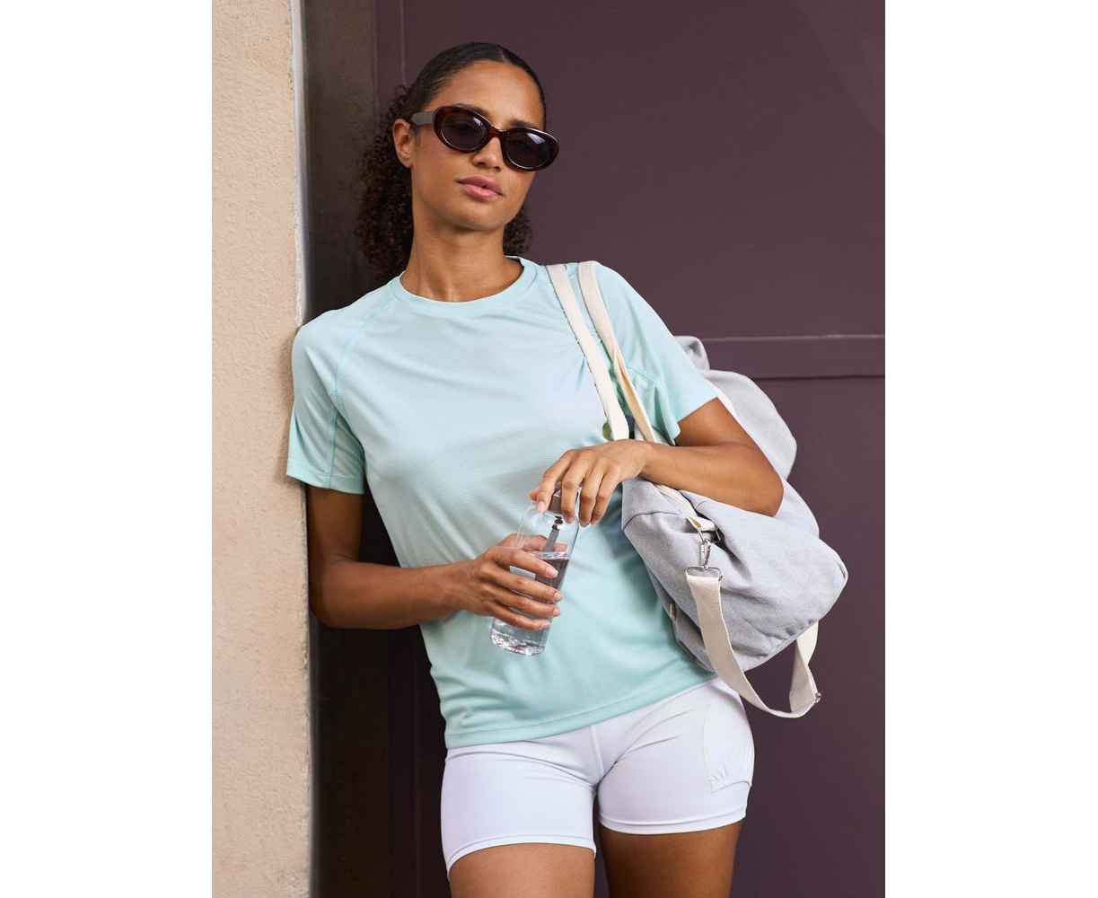 Женская спортивная футболка из дышащего и быстросохнущего материала.