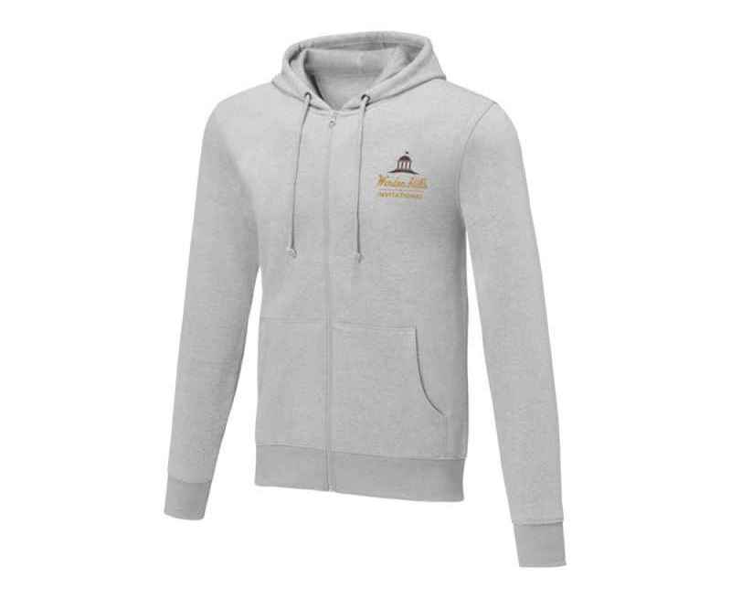 Мужская толстовка на молнии Theron. Основная этикетка, которую можно оторвать или отрезать, без неудобных пришитых ярлыков. Завязки на капюшоне. Расположенная по центру молния. Карман кенгуру. С подшивкой из гладкого трикотажа в рубчик. С манжетами из гладкого трикотажа в рубчик. Внутренняя сторона покрыта ворсом. Тесьма из основного материала по внутренней стороне горловины. Трикотаж 50% Хлопок, 50% Полиэстер, 240 g/m2.