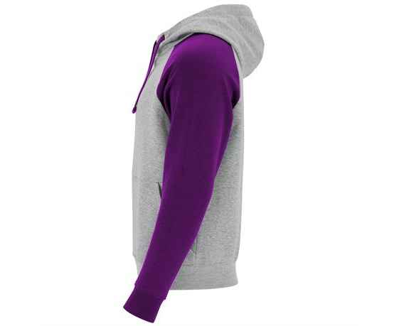 Двухцветное Толстовка унисекс. Капюшон с запахом спереди на горловине, металлическими люверсами и контрастной внутренней частью и шнурками. Контрастные рукава реглан. Карман-кенгуру. Манжеты и низ в рубчик 1 x 1 с эластаном.* Съемная этикетка.