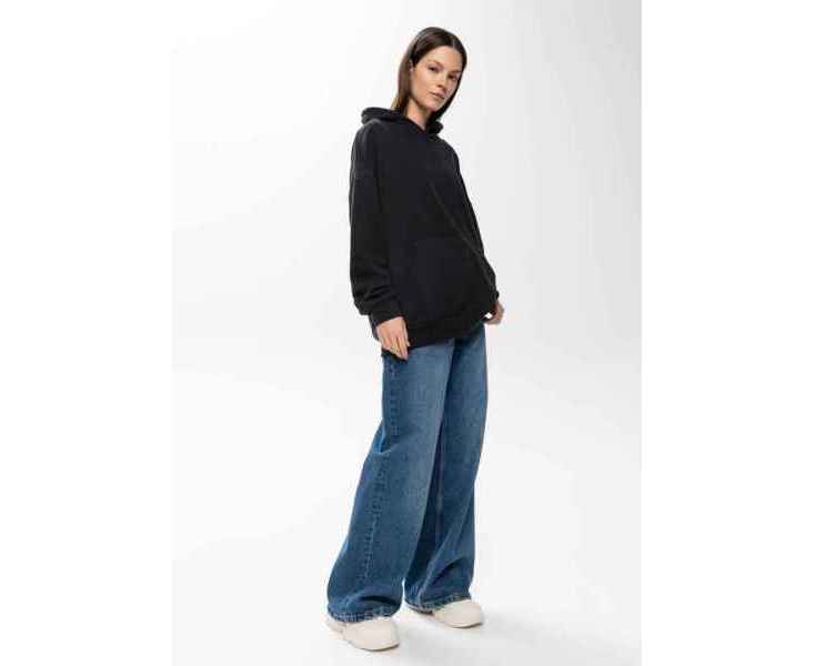 Универсальная толстовка свободного силуэта с капюшоном комфортной глубины, спущенной линией плеча и глубоким карманом-кенгуру. Манжет и низ изделия оформлены широкой эластичной резинкой.