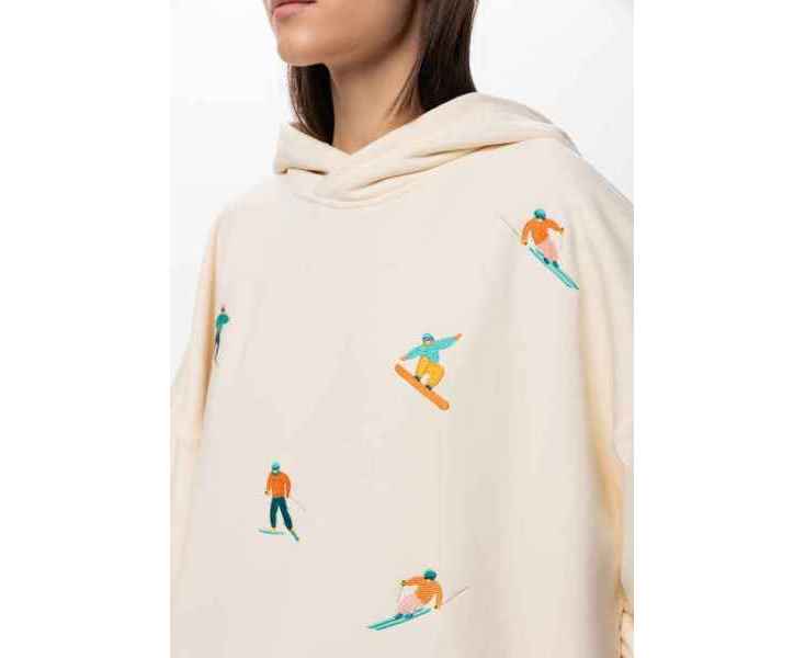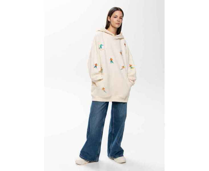 Универсальная толстовка свободного силуэта с капюшоном комфортной глубины, спущенной линией плеча и глубоким карманом-кенгуру. Манжет и низ изделия оформлены широкой эластичной резинкой.