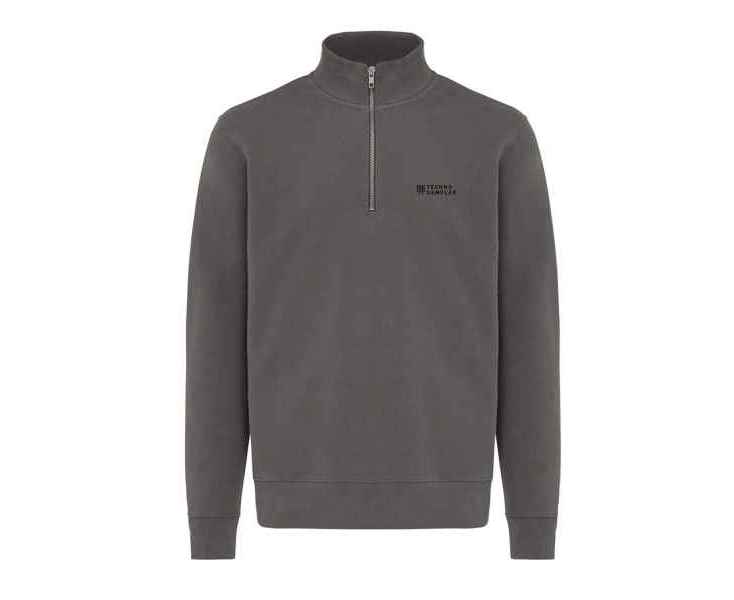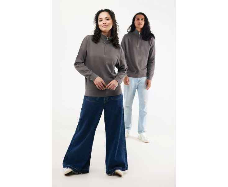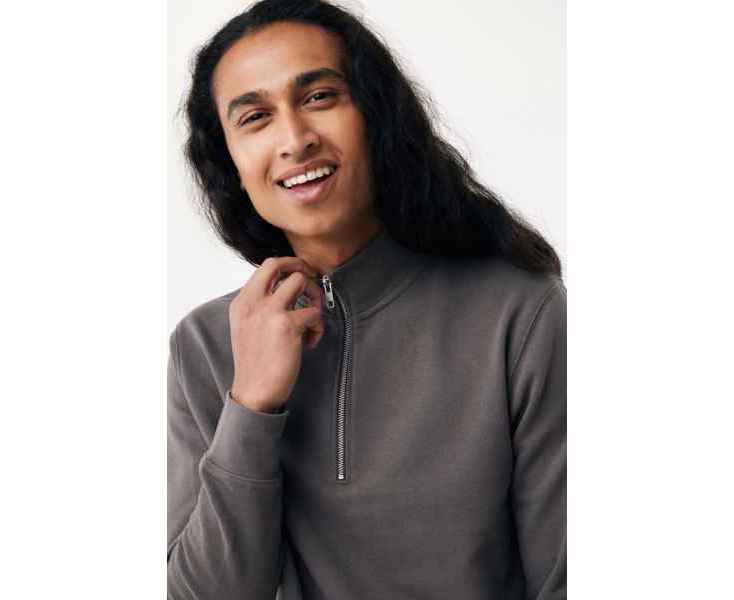 Свитшот на молнии выполнен из 100% хлопка, который на 30% состоит из переработанного и на 70% из органического. Воротник-стойка, втачные длинные рукава и резинка по манжетам и низу. Внутренняя сторона выполнена из френч-терри.