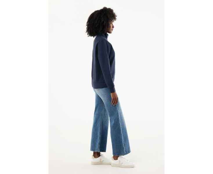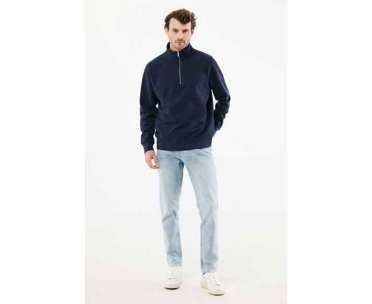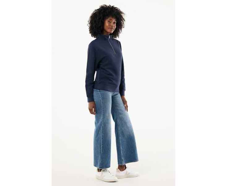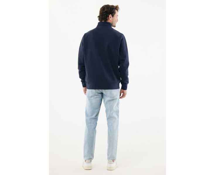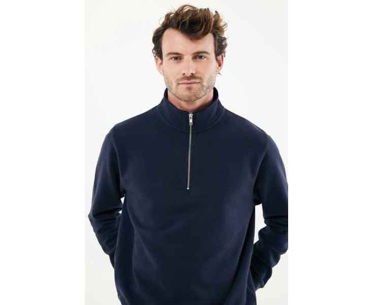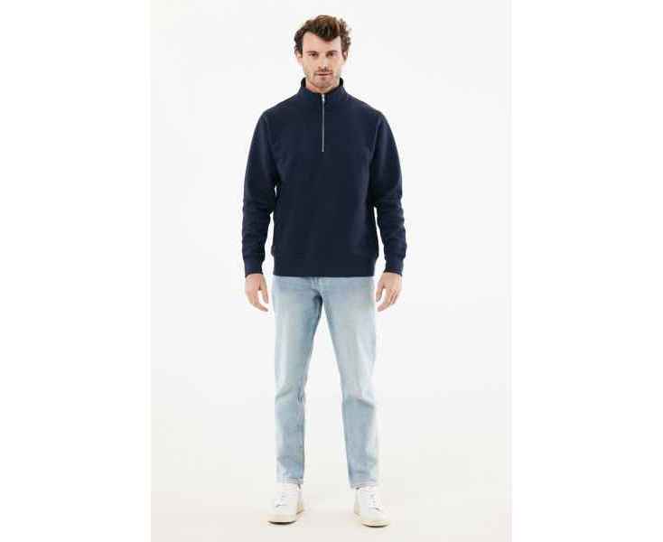 Свитшот на молнии выполнен из 100% хлопка, который на 30% состоит из переработанного и на 70% из органического. Воротник-стойка, втачные длинные рукава и резинка по манжетам и низу. Внутренняя сторона выполнена из френч-терри.