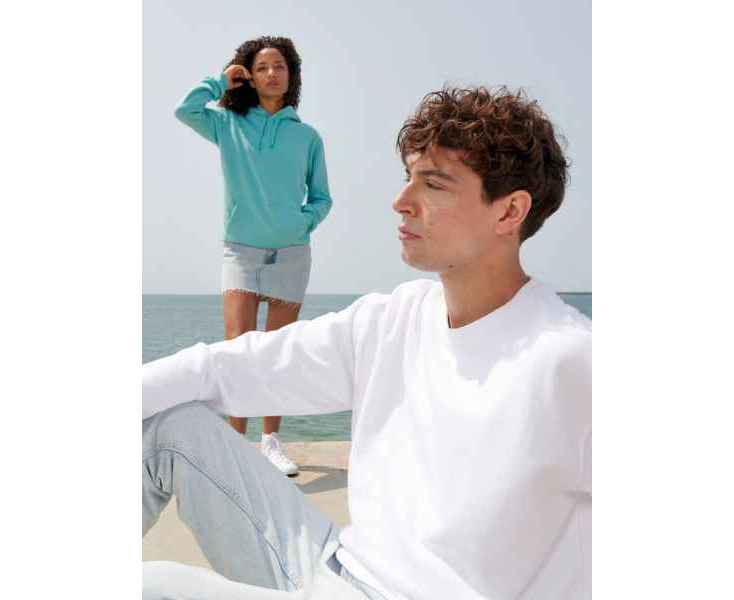 Свитшот унисекс из хлопка и переработанного полиэстера с круглым вырезом и втачным рукавом.