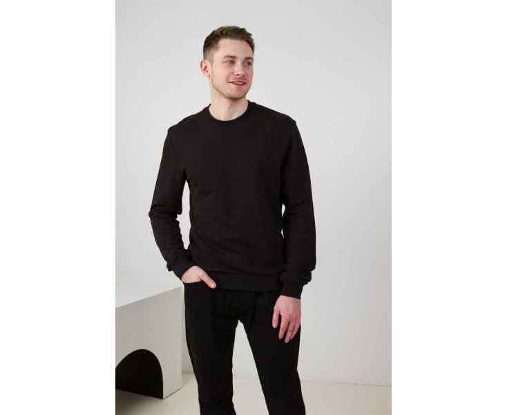 Модель свободного силуэта с округлым воротом и втачным рукавом. Ворот, манжет и низ изделия оформлены эластичной бейкой в тон основному цвету. Модель подойдет как для мужского, так и для женского гардероба.