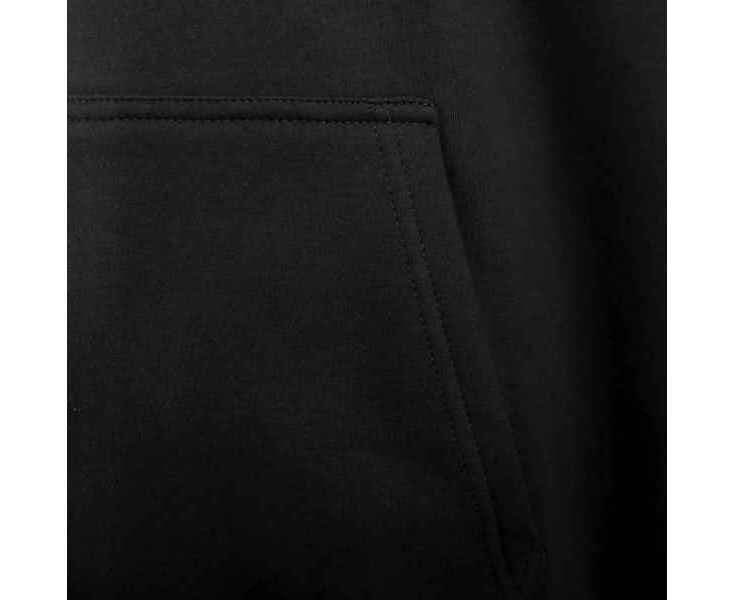 Толстовка изготовлена из двустороннего полотна «сэндвич», где верхний слой — 100% хлопок, а внутренний — мягкий флис из 100% полиэстера. Это сочетание обеспечивает отличную теплоизоляцию и комфорт, что делает изделие особенно привлекательным в холодное время года.