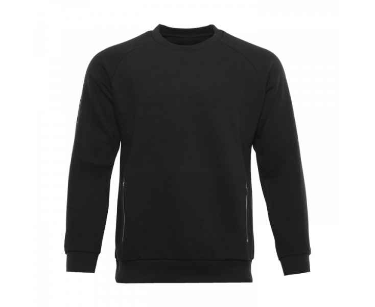 Свитшот прямого силуэта с рукавом-реглан и прорезным карманом на молнии. Манжет и низ изделия дополнены плотным манжетом.