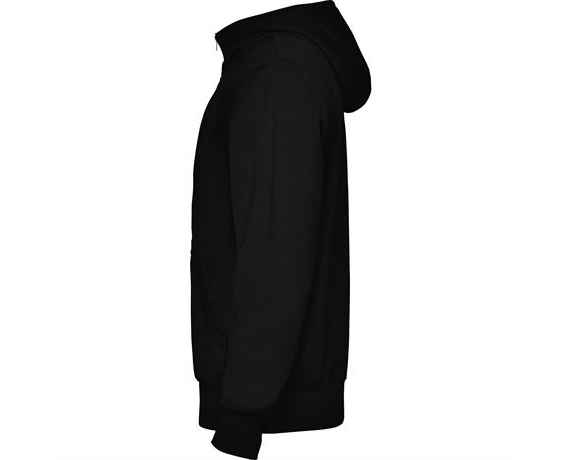 Толстовка с капюшоном, высоким воротником и молнией. Окантовка капюшона и карманов из ткани в рубчик. Карман-кенгуру. Манжеты рукавов и низ в рубчик 2 x 2.*Съемная этикетка.