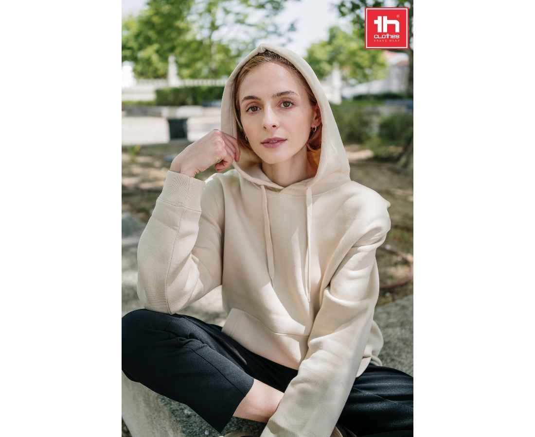 Толстовка унисекс с капюшоном. Внутренняя сторона с начесом. Манжеты и низ изделия обработаны рибом 1х1. Карман-кенгуру. Капюшон с отверстиями и кулиской в тон изделия.Цвет, близкий к Pantone 652 C