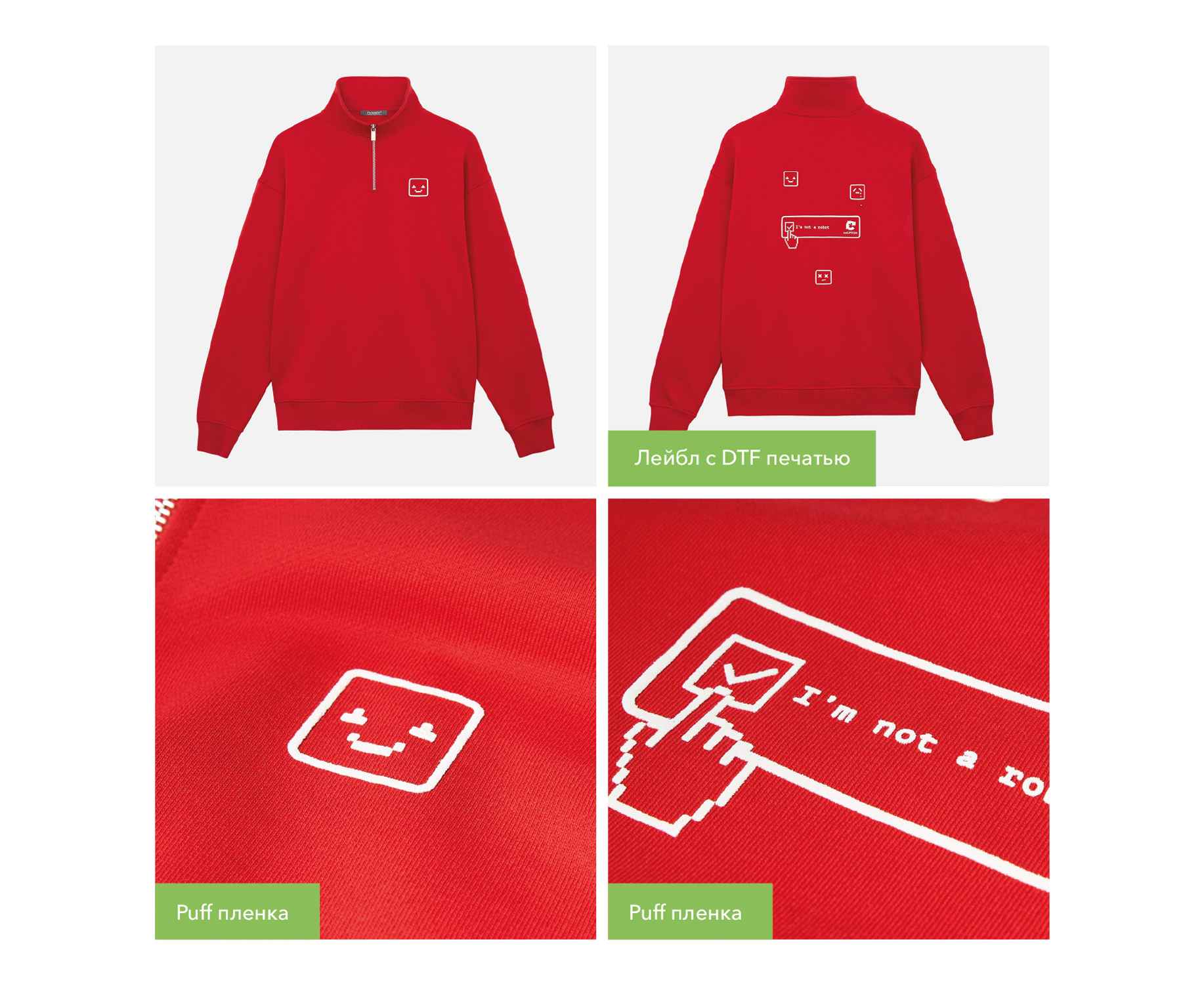 Изготовлена из плотного, но лёгкого хлопкового футера без начёса — материал держит форму, оставаясь мягким и приятным к телу. В производстве использована высококачественная пряжа пенье (compact penye) — сбалансированная по прочности и тактильной мягкости.