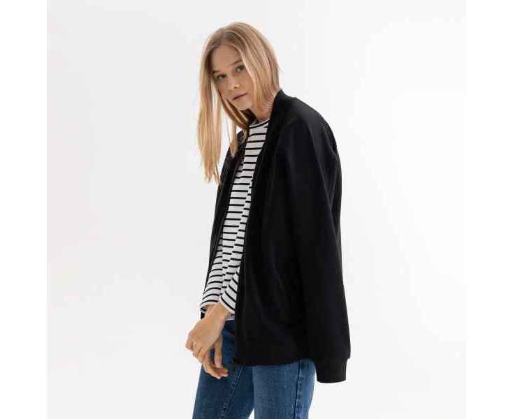 Рукав реглан даёт свободу в плечах, а воротник стойка выглядит естественно и аккуратно. Боковые карманы, манжеты и нижняя резинка делают модель удобной в движении и практичной в повседневной носке.