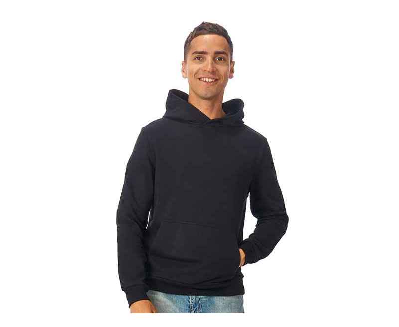 Толстовка с капюшоном (худи) из плотного хлопкового 3х ниточного футера. В капюшоне подкладка в тон, а горловина спинки дополнительно укреплена тесьмой с выделкой елочка. Капюшон без шнурков – ничего не отвлекает от вашего брендирования. Манжеты и низ изделия отделаны рибом 2х2. Глубокий комфортный карман кенгуру на полочке. Полотно из утяжеленного хлопкового футера внутри с петельками без начеса.