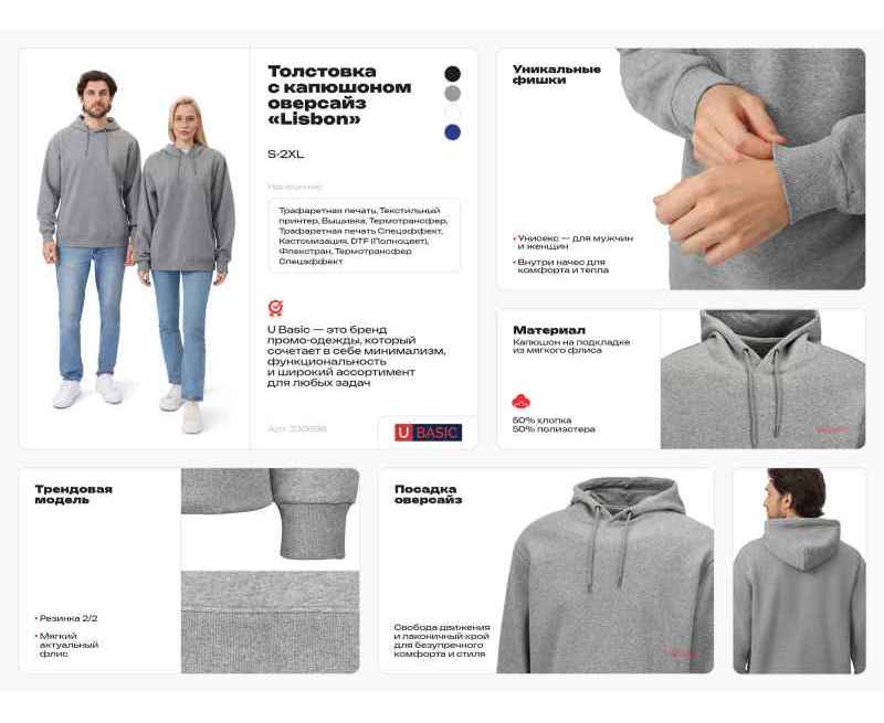 Подробнее о U Basic Толстовка с капюшоном оверсайз Lisbon унисекс, 2XL, 2306422XL