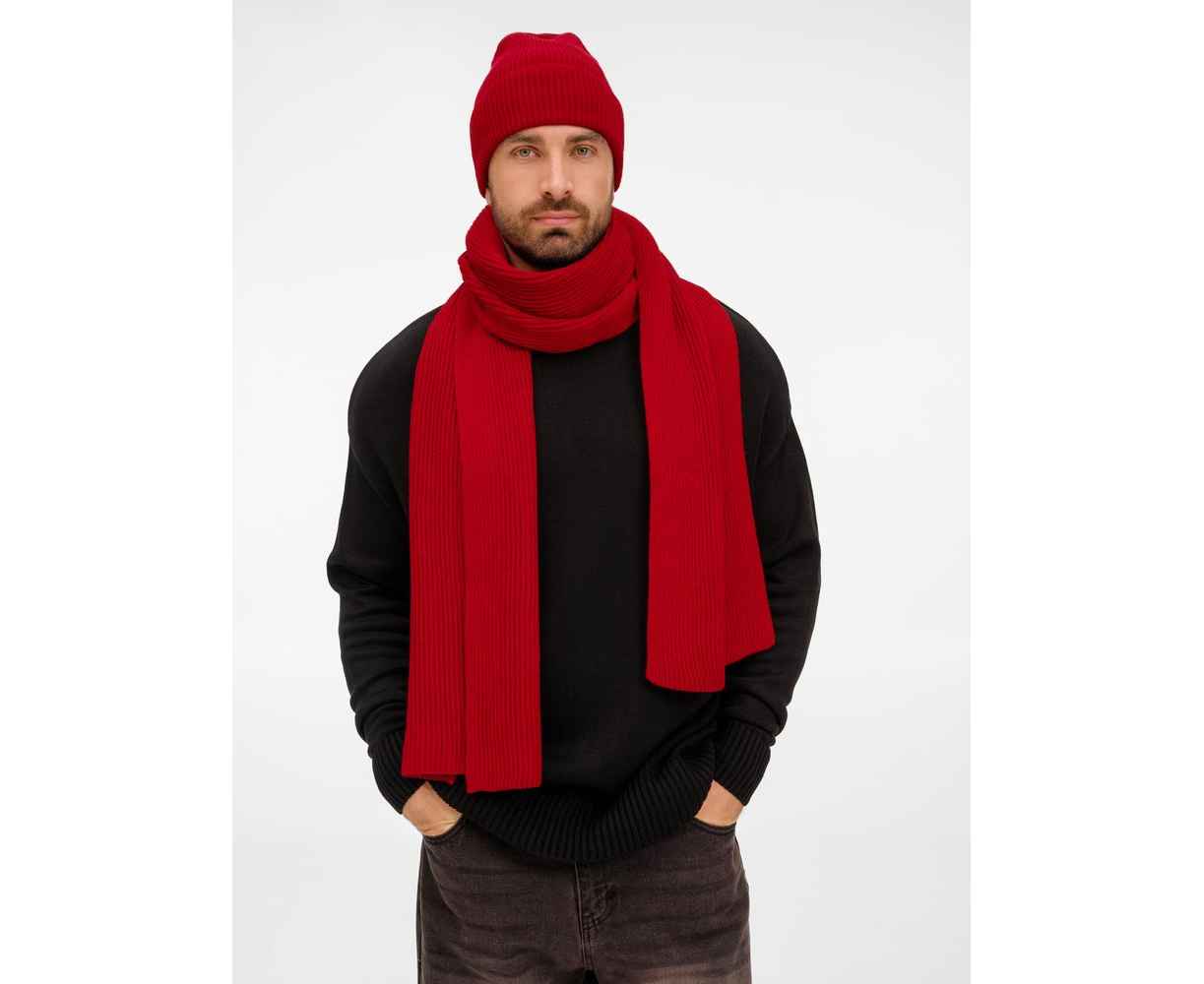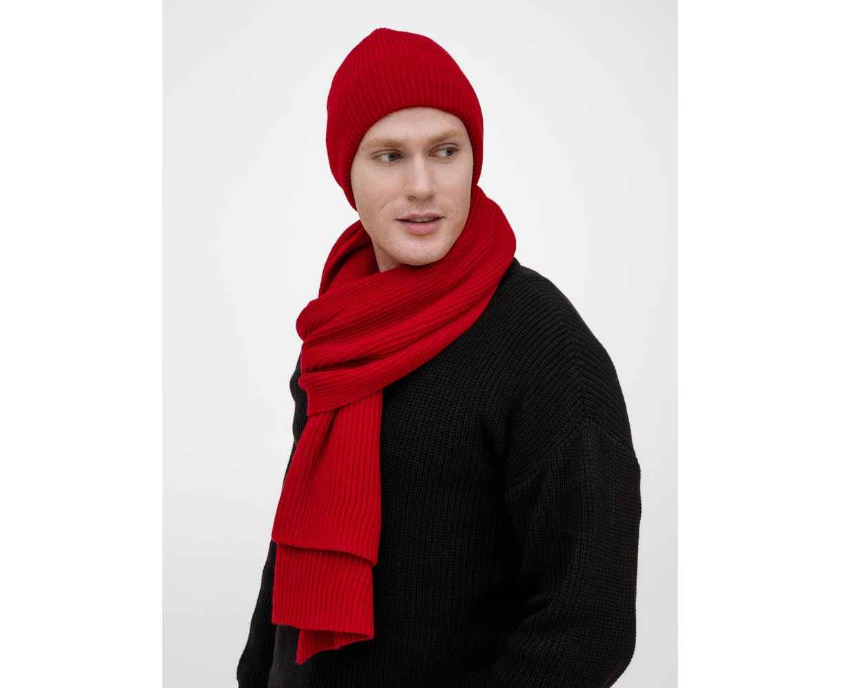 Удлиненная шапка с широким отворотом и фактурной вязкой мягко облегает голову, создавая элегантный силуэт. Широкий шарф с выразительным рельефом позволяет экспериментировать с драпировками, добавляя образу объем и динамику. Перчатки с аккуратной резинкой на манжете обеспечивают идеальную посадку и тактильный комфорт.