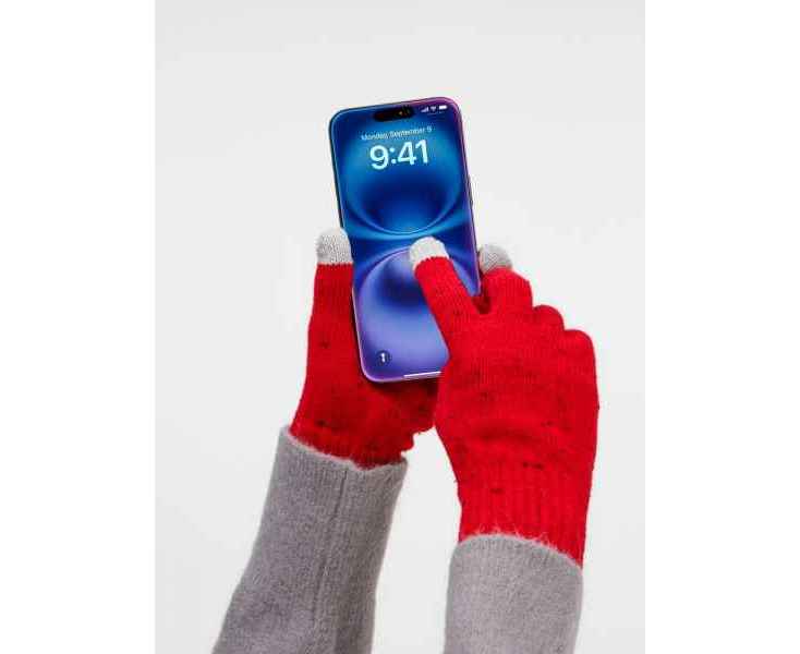 Перчатки Spotti Senso с токопроводящими волокнами на кончиках пальцев позволяют легко управлять смартфоном в любой мороз. Эргономичный крой и эластичная пряжа обеспечивают удобную посадку, сохраняя тепло и свободу движений. Как и в шапке, здесь использованы контрастные нити — визитная карточка коллекции.
