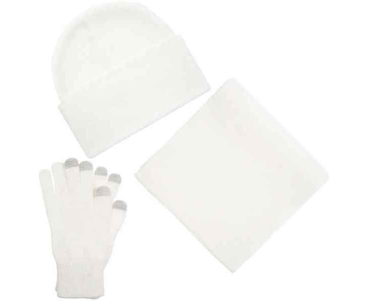 В комплект входят двухслойная шапка с регулируемым отворотом и легкий однослойный шарф из мягкой акриловой пряжи, сохраняющие тепло и защищающие от ветра, а также эргономичные перчатки со специальными токопроводящими волокнами на кончиках пальцев, позволяющие свободно пользоваться смартфоном даже в холодную погоду. Универсальная цветовая гамма и лаконичный дизайн делают набор органичным дополнением к любой верхней одежде.