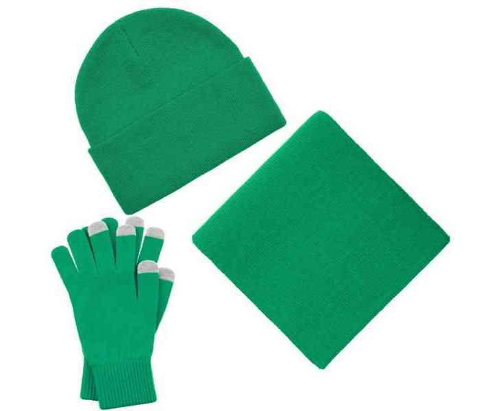 В комплект входят двухслойная шапка с регулируемым отворотом и легкий однослойный шарф из мягкой акриловой пряжи, сохраняющие тепло и защищающие от ветра, а также эргономичные перчатки со специальными токопроводящими волокнами на кончиках пальцев, позволяющие свободно пользоваться смартфоном даже в холодную погоду. Универсальная цветовая гамма и лаконичный дизайн делают набор органичным дополнением к любой верхней одежде.