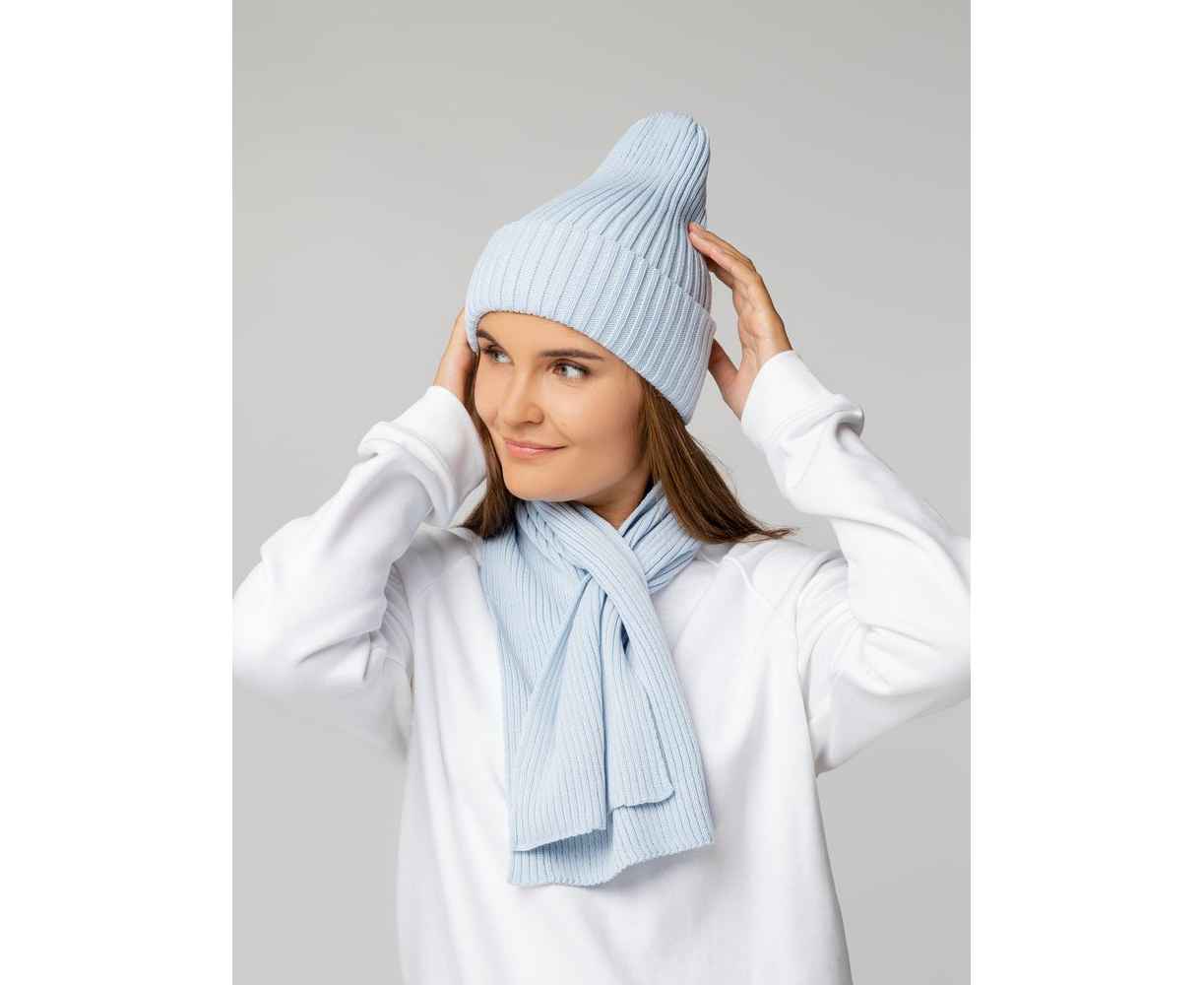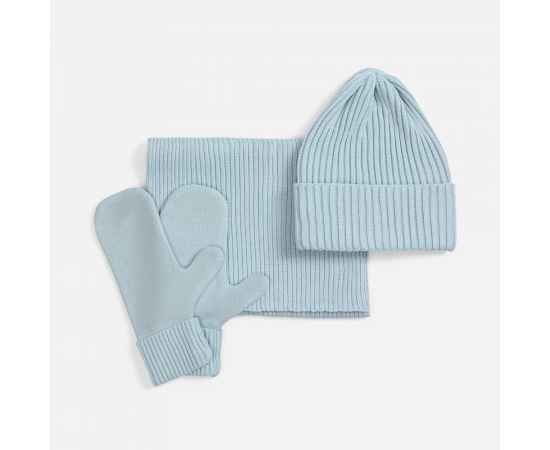 В набор входит удобный шарф с технологичным отверстием для быстрого завязывания, шапка с двойным отворотом и теплые двухслойные варежки с широкой манжетой. Все изделия связаны из акриловой пряжи, отличаются практичностью и элегантной простотой.