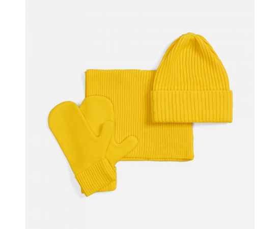 В набор входит удобный шарф с технологичным отверстием для быстрого завязывания, шапка с двойным отворотом и теплые двухслойные варежки с широкой манжетой. Все изделия связаны из акриловой пряжи, отличаются практичностью и элегантной простотой.