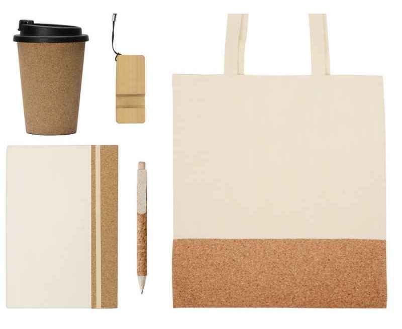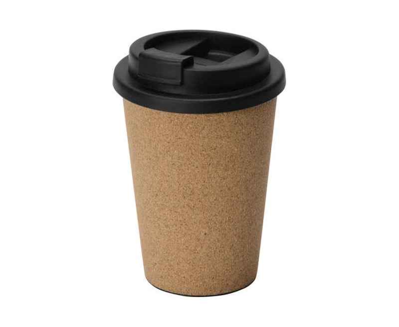 Многоразовый стакан с двойными стенками выполнен из древесины пробкового дерева, также как и корпус шариковой ручки с нажимным механизмом.