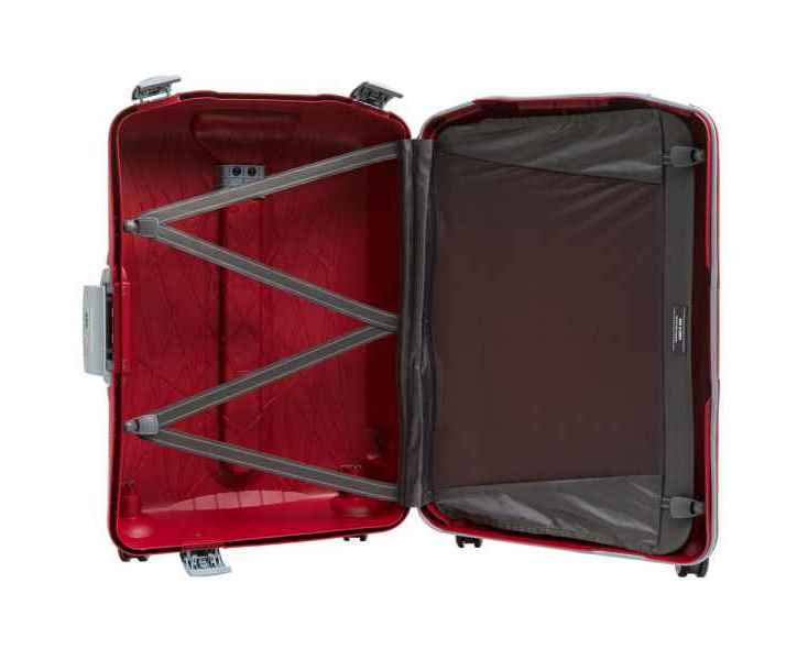 - Чемодан с 2 отделениями: одно из них с фиксирующими ремнями, второе — с съемной перегородкой для крепления багажа