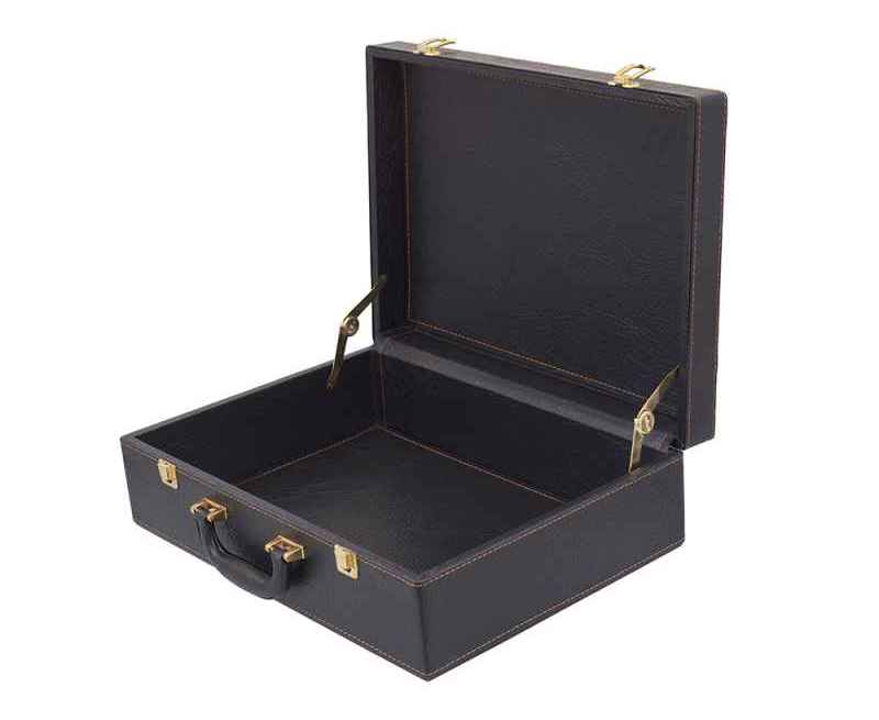 Роскошный кожаный дипломат с двойной защитой – два замочка надежно сохранят содержимое. Вместительный внутренний объем подойдет для дорогих презентов, а изящная строчка подчеркнет статус подарка.