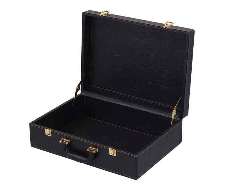 Элегантный дипломат из сплит-кожи с аккуратной строчкой по краям – идеальная упаковка для особенного подарка. Удобная ручка и надежный замочек делают его не только красивым, но и практичным. Внутри достаточно места для презента, который запомнится надолго!