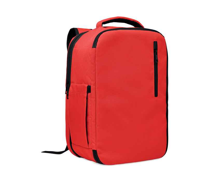 Рюкзак-трансформер для ручной клади из полиэстера RPET 600D. Имеет основное отделение с двумя открытыми секциями, сетчатую перегородку, мягкий карман для 15-дюймового ноутбука и багажный ремень.
