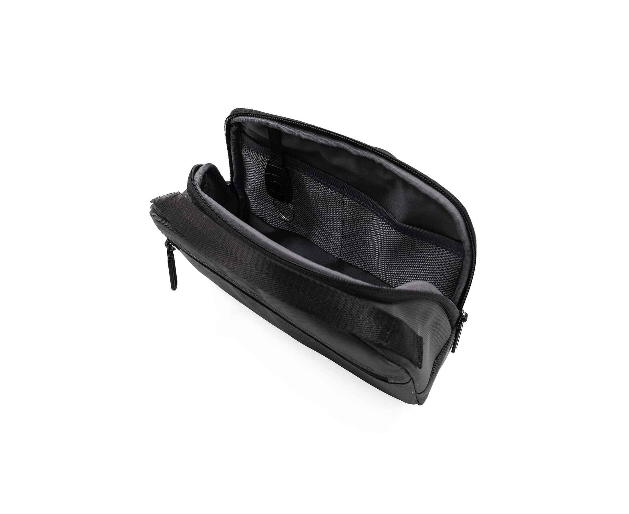 Экологичная сумка из баллистического полиэстера 800D с элементами из веганской кожи. Изготовлена из 1,7 переработанных ♻PET- бутылок (по 500 мл), сертифицирована по стандарту RCS (Recycled Claim Standard). Компактная и удобная, внутри 5 карманов и 4 эластичные петли для хранения телефона, кошелька и других мелочей, есть съемный держатель для ключей. Основное отделение на молнии и две боковые петли для крепления аксессуаров или карабина. Материал устойчив к влаге и загрязнениям. Объем 2,2 л.