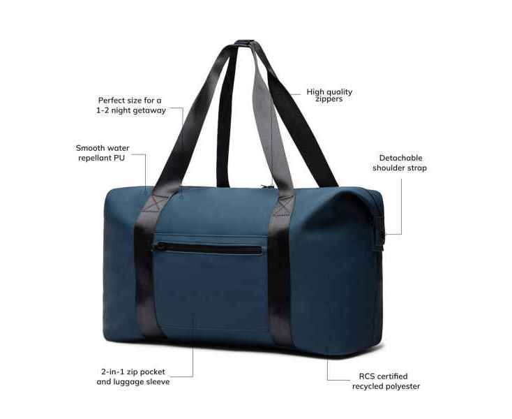 Дорожная сумка VINGA Baltimore идеально подойдет для коротких путешествий на 1-2 дня. Изготовлена из переработанного полиэстера, сертифицированного RCS, с гладким полиуретановым покрытием. Функцию багажного ремня выполняет внешний карман на молнии, благодаря которому сумку легко зафиксировать на ручке чемодана. Есть удобные лямки для переноски и съемный плечевой ремень, длина которого регулируется. Внутри вместительного основного отделения находится карман на молнии, куда вы можете спрятать самое ценное. Переработанный материал изделия сертифицирован RCS (Recycled Claim Standard). Сертификация RCS гарантирует, что вся цепочка поставок проверена и подтверждена. Содержание вторсырья: 20% от общего веса изделия.
