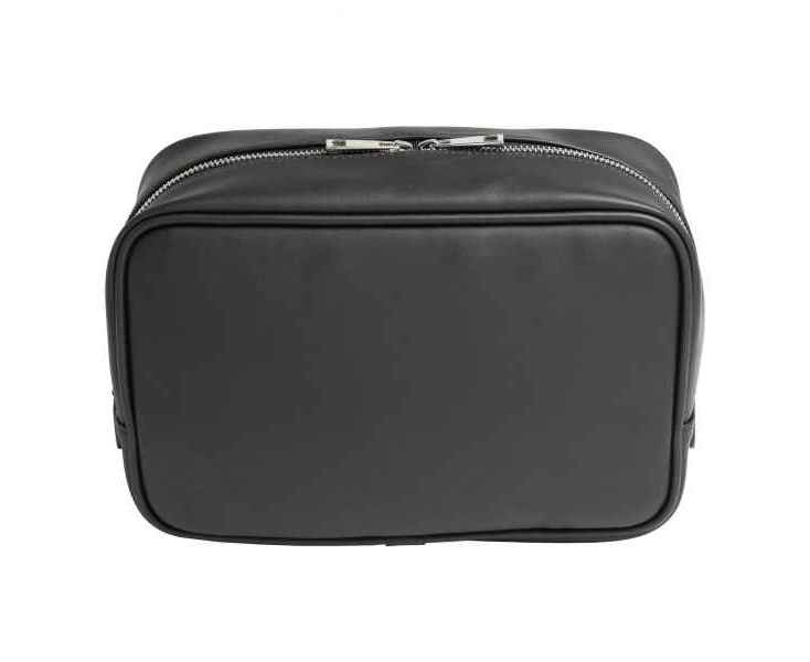 Косметичка 'Zoom' с минималистским дизайном и современным видом изготовлена из гладкого черного материала с блестящей хромированной металлической надписью. 1 небольшой внутренний карман на молнии. Поставляется в элегантной хлопковой сумке Cerruti 1881.