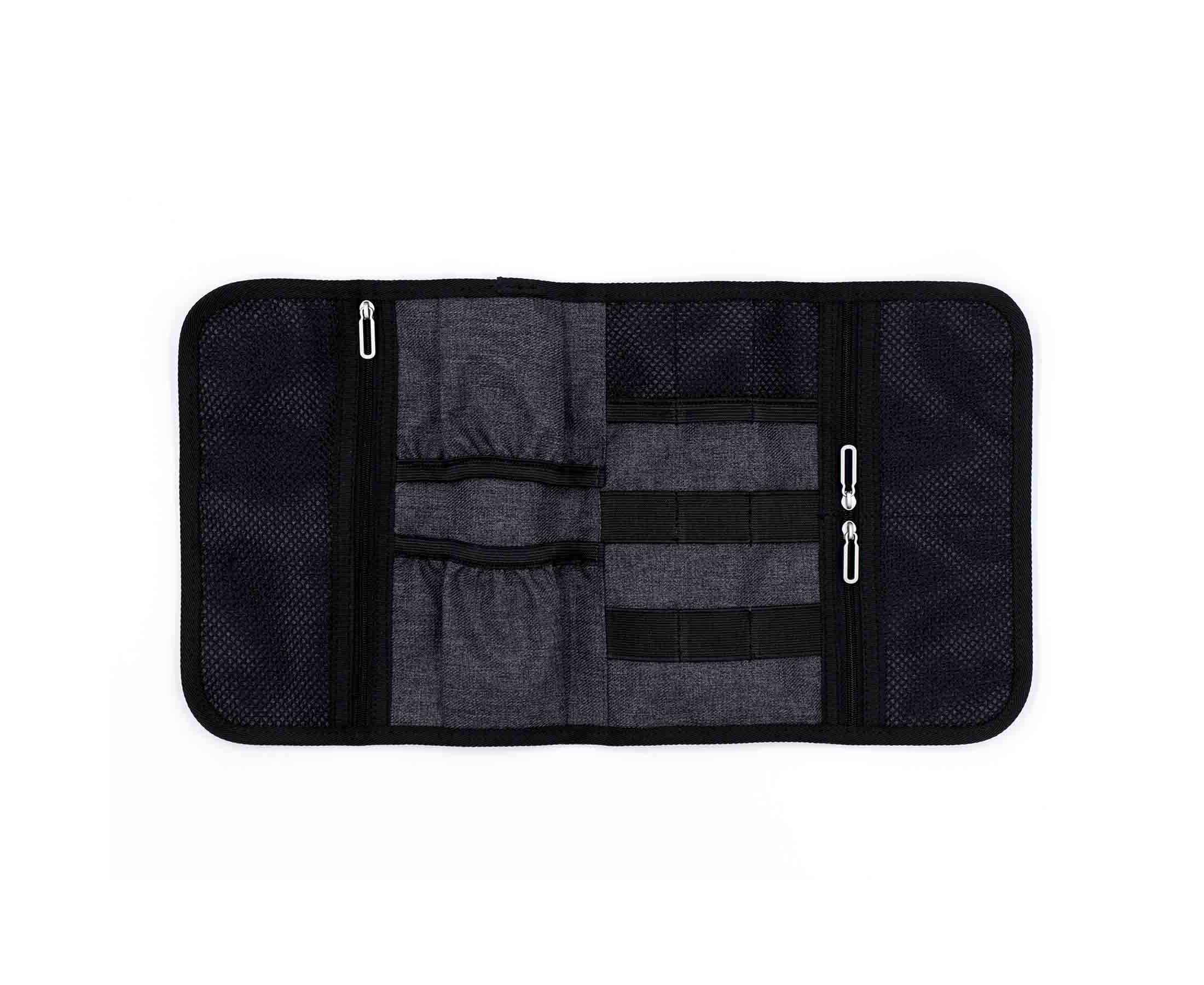 Компактный органайзер для аксессуаров с гибкой конструкцией и эластичной застёжкой. Выполнен из водо- и грязеотталкивающего полиэстера 600D премиум-класса. Внутри предусмотрены 6 эластичных петель для кабелей, ручек, кистей и инструментов, 3 сетчатых кармана для USB, SD и SIM-карт и 2 открытых отделения для зарядного устройства, адаптера или мыши. Произведён из 1,5 переработанных ♻ PET-бутылок (по 500 мл) и сертифицирован по стандарту RCS (Recycled Claim Standard).