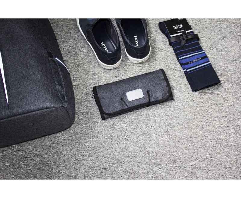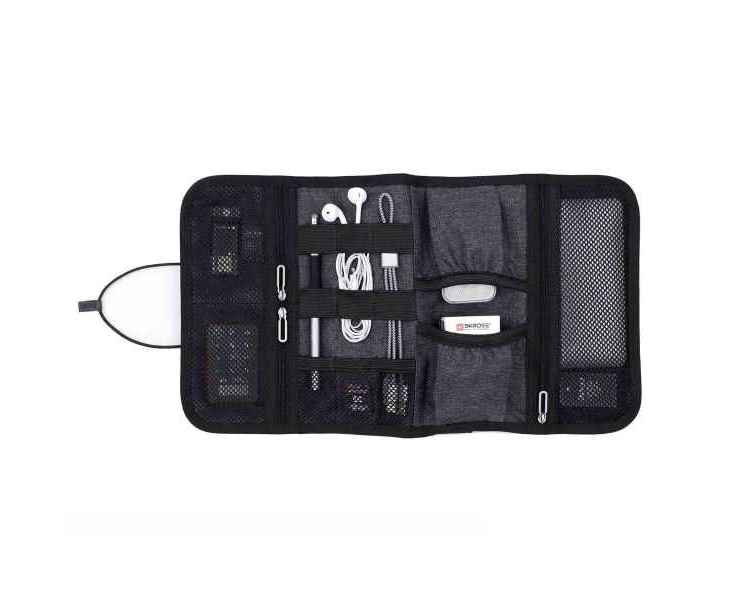 Компактный органайзер для аксессуаров с гибкой конструкцией и эластичной застёжкой. Выполнен из водо- и грязеотталкивающего полиэстера 600D премиум-класса. Внутри предусмотрены 6 эластичных петель для кабелей, ручек, кистей и инструментов, 3 сетчатых кармана для USB, SD и SIM-карт и 2 открытых отделения для зарядного устройства, адаптера или мыши. Произведён из 1,5 переработанных ♻ PET-бутылок (по 500 мл) и сертифицирован по стандарту RCS (Recycled Claim Standard).