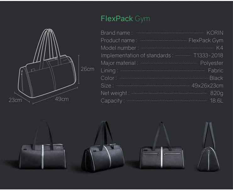 Подробнее о Korin Спортивная KORIN сумка FlexPack Gym 49х26х23 см, темно-серая, Черный