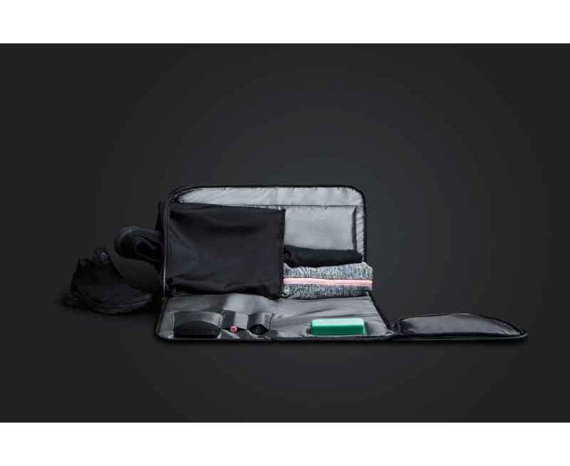 Спортивная сумка-трансформер FlexPack Gym со светоотражающими элементами, водонепроницаемым отделением и съемным плечевым ремнем. Сделана из прочного устойчивого к порезам и трению водоотталкивающего многослойного полиэстера, не требующего специального ухода. Бока выполнены из дышащего материала, который обеспечивает вентиляцию основного и водонепроницаемого изолированного отделений и препятствует появлению в них неприятного запаха, что крайне важно для спортивной сумки. Еще одной особенностью сумки является возможность трансформации в плоский пакет, который легко хранить и брать с собой. Благодаря единой молнии, идущей по всей сумке, она складывается, упаковывается в пришитый чехол и приобретает компактные размеры 26х26х8 см. В рабочем состоянии сумка имеет размер 49х26х23 см, ее объем 18,6 л. Внутри основного отделения есть несколько функциональных карманов: 3 небольших кармана для мелких вещей, карточек и т п, большой карман на молнии для одежды размером 40х20 см, внутри него еще 2 кармана длиной 16,5 и высотой 13 см. Закрывается сумка на прорезиненную водонепроницаемую молнию со светоотражающей полосой. Застежки молнии блокируются на кодовый замок TSA007 с функцией таможенного досмотра. Сбоку сумки вход на молнии в специальное водонепроницаемое вентилируемое отделение для обуви, мокрого полотенца, купальника, душевых принадлежностей. Отделение треугольной формы 23х20 см, глубиной 26 см. С внешней стороны сумки находятся 2 кармана на прорезиненных водонепроницаемых молниях со светоотражающими полосами. Длина карманов 17 см, высота 13 см, в них можно положить телефон, ключи и прочие мелочи. Для дополнительной безопасности посередине сумки идет светоотражающая серебристая полоса. Сумка FlexPack Gym оснащена съемным плечевым ремнем с регулируемой длиной. Вес сумки всего 820 гр. Сумка идеальна для бассейна, спортивного зала, фитнеса.