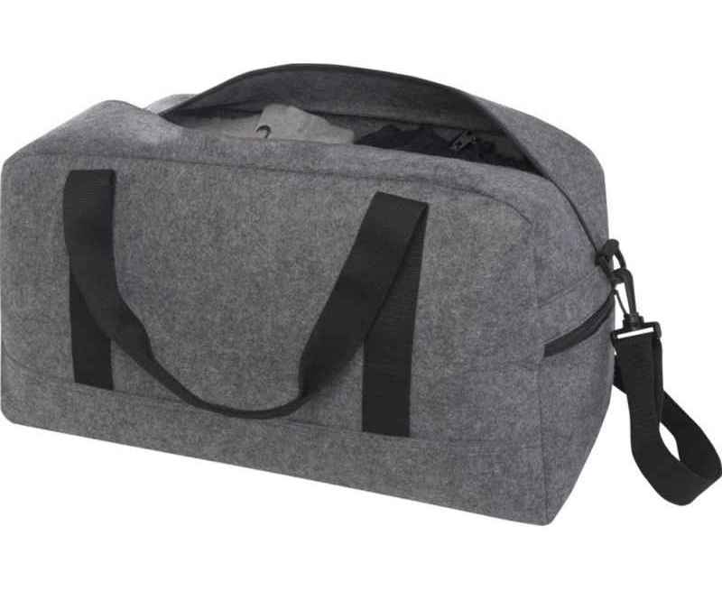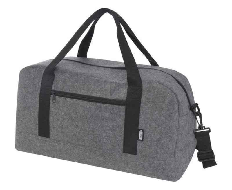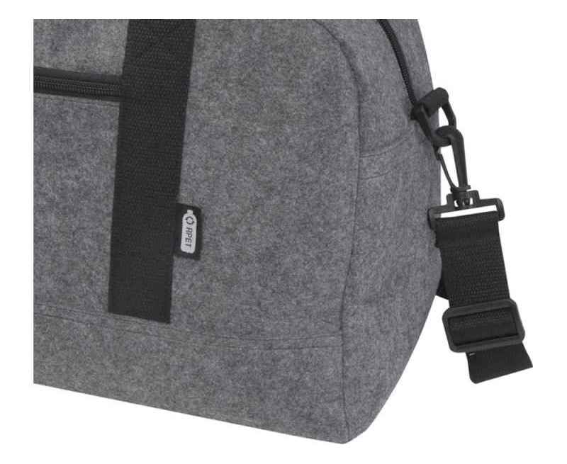 Многоцелевая спортивная сумка из мягкого и прочного высококачественного переработанного фетра, сертифицированного согласно GRS. Имеет большое основное отделение, передний карман на молнии, боковой карман, съемные и регулируемые плечевые ремни и удобные хлопковые ручки для различных способов переноски. Сумка оснащена небольшими ножками/шпильками в нижней части, которые удерживают ее немного приподнятой над землей, помогая предотвратить попадание грязи или влаги на сумку.