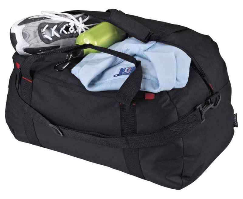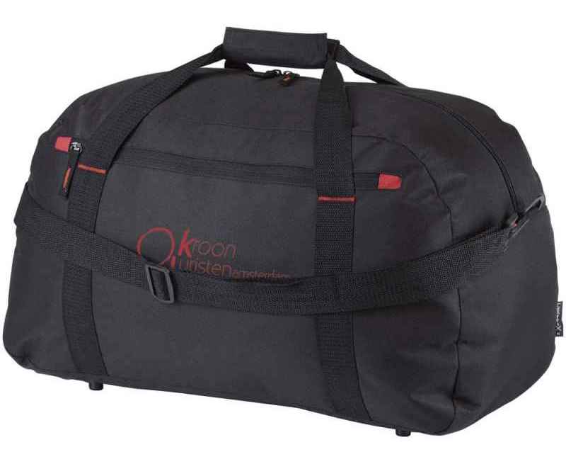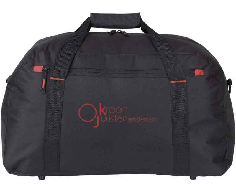 Дорожная сумка Vancouver. Большая дорожная сумка с красным элементом отделки, передним карманом на молнии и регулируемым плечевым ремнем.