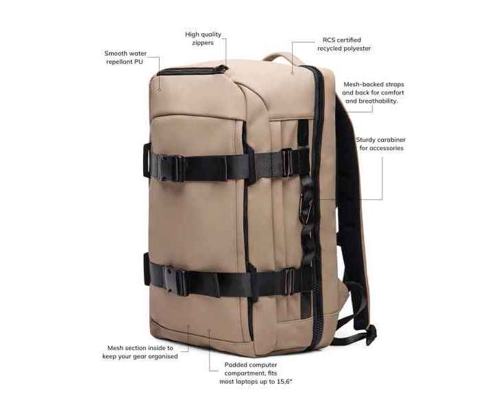 Рюкзак для путешествий VINGA Baltimore — идеальный выбор для поездок. Изготовлен из сертифицированного RCS переработанного полиэстера. Снаружи — приятный на ощупь полиуретан. Внутри — мягкое отделение для ноутбука и сетчатый органайзер для эргономичного хранения. Есть прочная ручка сверху и карабин для крепления мелких предметов. Боковая молния обеспечивает удобный доступ к основному отделению. Это идеальный рюкзак как для ежедневных поездок, так и для путешествий на выходные. Переработанный материал изделия сертифицирован RCS (Recycled Claim Standard). Сертификация RCS гарантирует, что вся цепочка поставок проверена и подтверждена. Содержание вторсырья: 16% от общего веса изделия. Объем 33 л.