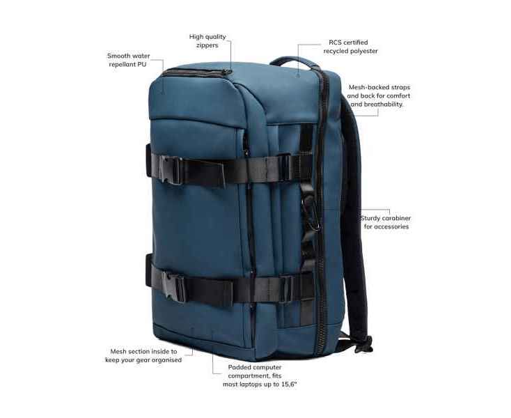 Рюкзак для путешествий VINGA Baltimore — идеальный выбор для поездок. Изготовлен из сертифицированного RCS переработанного полиэстера. Снаружи — приятный на ощупь полиуретан. Внутри — мягкое отделение для ноутбука и сетчатый органайзер для эргономичного хранения. Есть прочная ручка сверху и карабин для крепления мелких предметов. Боковая молния обеспечивает удобный доступ к основному отделению. Это идеальный рюкзак как для ежедневных поездок, так и для путешествий на выходные. Переработанный материал изделия сертифицирован RCS (Recycled Claim Standard). Сертификация RCS гарантирует, что вся цепочка поставок проверена и подтверждена. Содержание вторсырья: 16% от общего веса изделия. Объем 33 л.