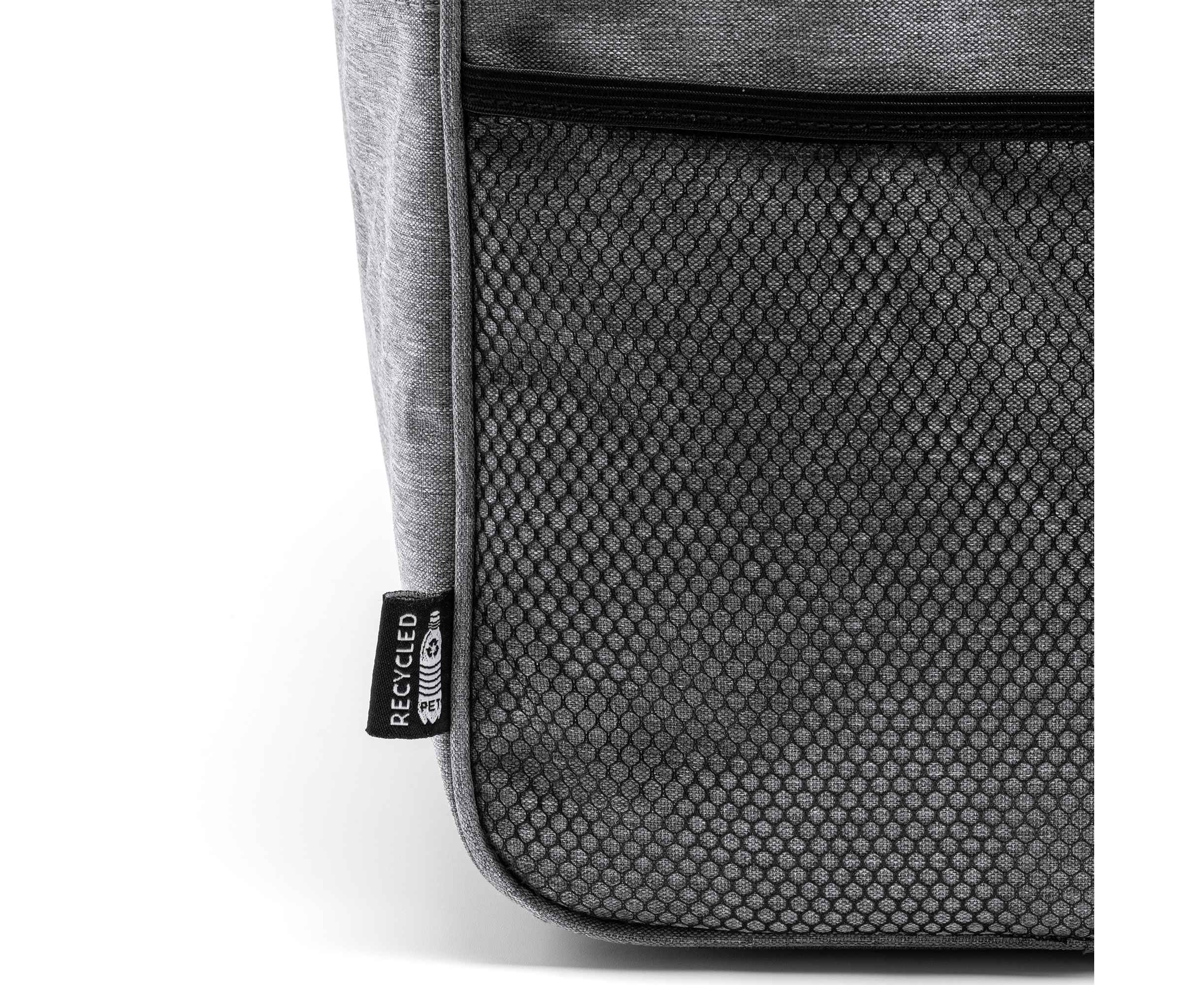 Многофункциональная сумка из 300D RPET с вересковым узором. Вместимость: 30 литров. Застежка-молния в основном и переднем кармане. Боковой сетчатый карман. Мягкий регулируемый плечевой ремень в комплекте.