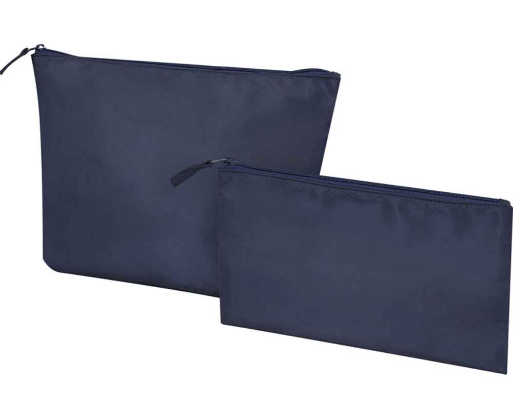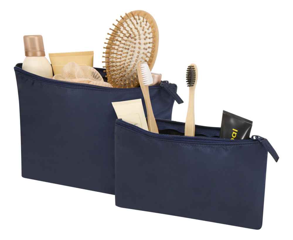 Набор из 2 косметичек, изготовленных из переработанного полиэстера. Полиэстер имеет сертификат GRS. В комплект входят одна большая и одна маленькая косметички. Легкие, прочные и удобние для хранения косметики или электроники. Большая сумка имеет размер 32 х 21 см, а маленькая 23 х 13 см.