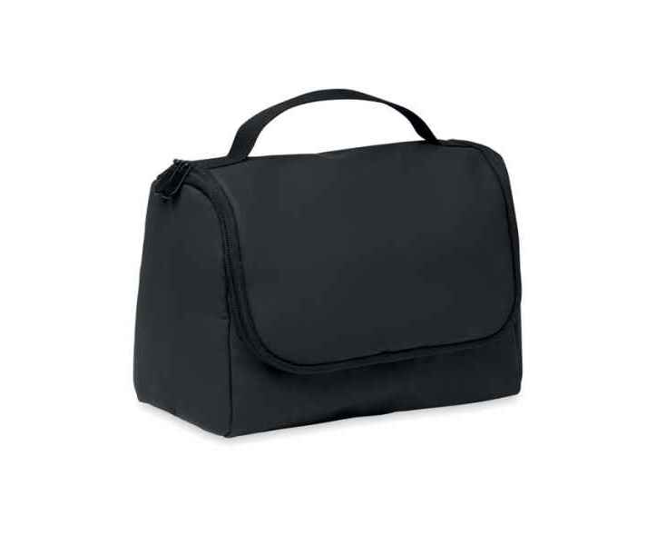 Сумка-несессер для косметики из мягкого полиуретана с крючком для подвешивания и подкладкой из RPET 210D. Одно большое основное отделение с внутренним сетчатым карманом на молнии и 1 дополнительное сетчатое отделение.