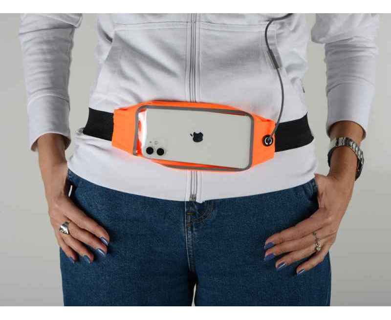 Сумка на пояс с отделением для смартфона размером до 16 х 8 см и выходом для наушников.