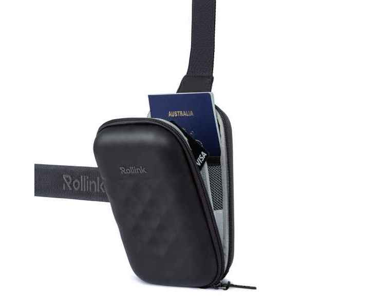 Дорожная сумочка Rollink Mini Bag Go черного цвета Charcoal. Размер 19,5x12x6 см. Сумка закрывается на молнию. Жесткие стенки сделаны из поликарбоната, что дает надежную защиту от порезов и несанкционированного доступа к вашим вещам и документам. Водозащищенная. Регулируемый ремень. Внутри сумки есть многочисленные отделения и карманы для удобной организации кредитных карт, мелочи, водительских прав, ключей и многого другого. Объем 1,2 л. Вес 270 гр.
