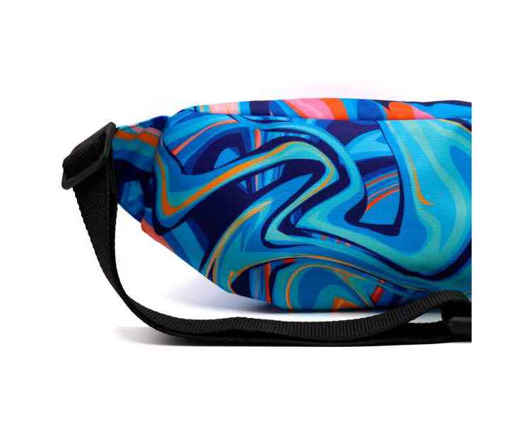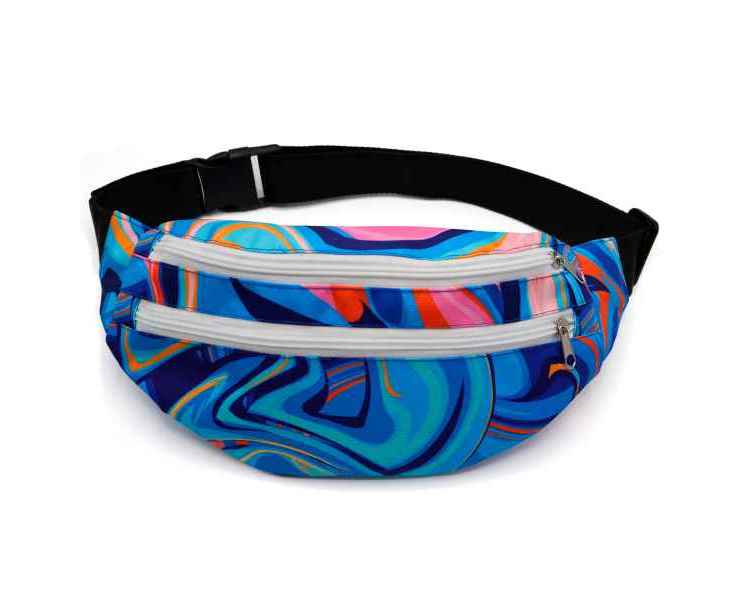 Полноцветная печать по всей поверхности от шва до шва. Возможны любые оттенки по CMYK: логотипы, надписи и разнообразные принты. Односторонняя сублимация. Вместительная модель с двумя отделениями. Регулируемый поясной ремень на защёлке-фастексе.