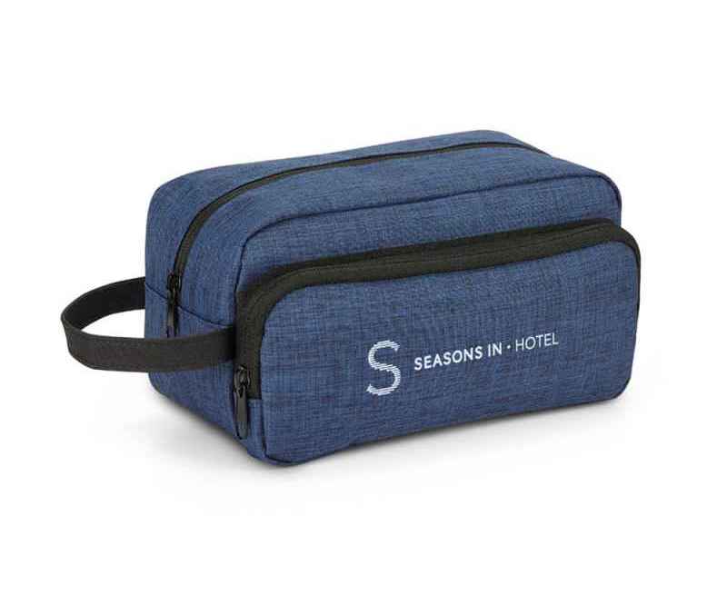Несессер высокой плотности 300D с ручкой, передним карманом, внутренней подкладкой и молнией. 220 x 115 x 115 мм.
