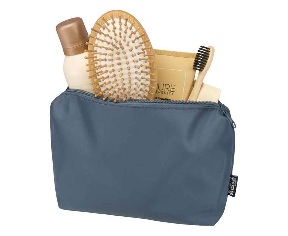 Дорожная косметичка Trip Aware™ из переработанных материалов — это компактное и простое решение для переноски повседневных вещей первой необходимости. Изготовленная из полиэстера с саржевым переплетением плотностью 290D, имея трикотажную основу и подкладку из материала RPET плотностью 210D/PU, она отличается лаконичным, минималистичным дизайном. В основном отделении достаточно места для туалетных принадлежностей и мелких предметов, что делает ее идеальным вариантом для коротких поездок или организованного хранения вещей на ходу. Каждая сумка также поставляется с индикатором Aware™. Эта инновационная функция позволяет пользователям отслеживать происхождение и путь своего товара с помощью QR-кода, повышая прозрачность цепочки поставок и способствуя более прочной связи между продуктом и процессом его производства. Объем: 2 литра.