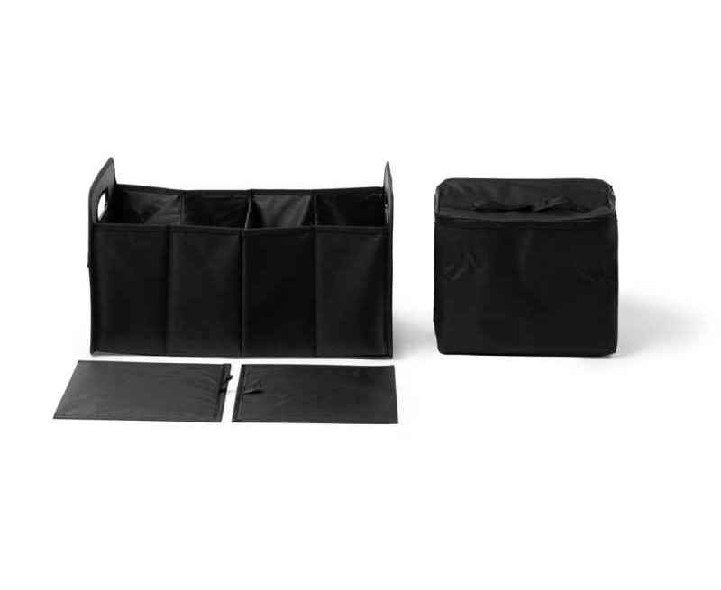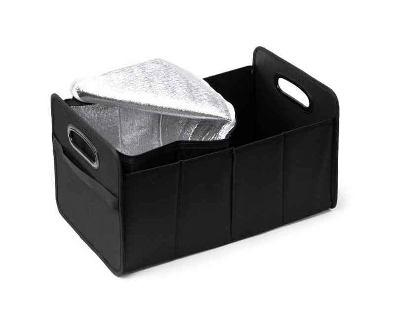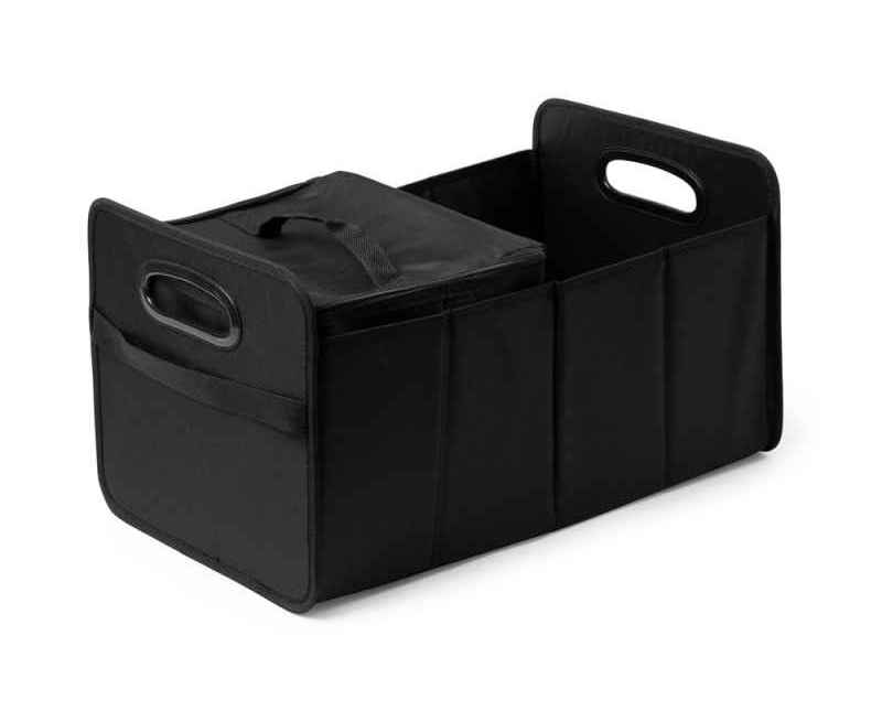Складной органайзер для автомобиля из полиэстера 600D с усиленными ручками. Два основных отсека и внешний карман. Включает в себя съемный охладитель объемом 12 л с изотермической подкладкой.