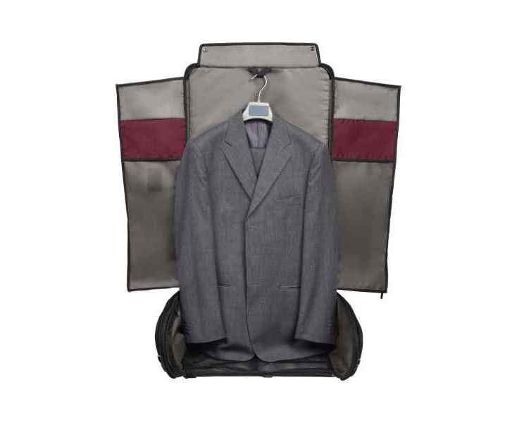 • Имеет два сетчатых кармана, одну петлю из тесьмы для вешалки и один клапан, закрывающий одежду и предотвращающий появление складок.
